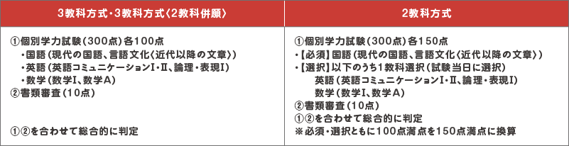 ※3教科方式受験者が2教科方式を併願受験した場合、選択教科は英語・数学の内、高得点の教科を採用します。