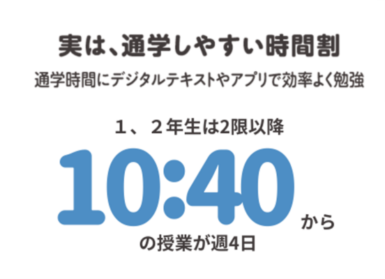 実は、通学しやすい時間割 1、2年生は、2限(10:40~)以降からの授業がほとんど(週4日)※時間割は、年度で多少の変更が伴う可能性があります。 メリット① 大学生活(特に1年生)を余裕をもってスタートできる メリット② 混雑する朝の通勤・通学 […]